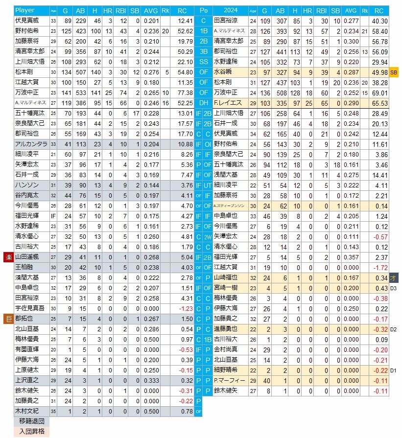 2023年と24年の打線の推移