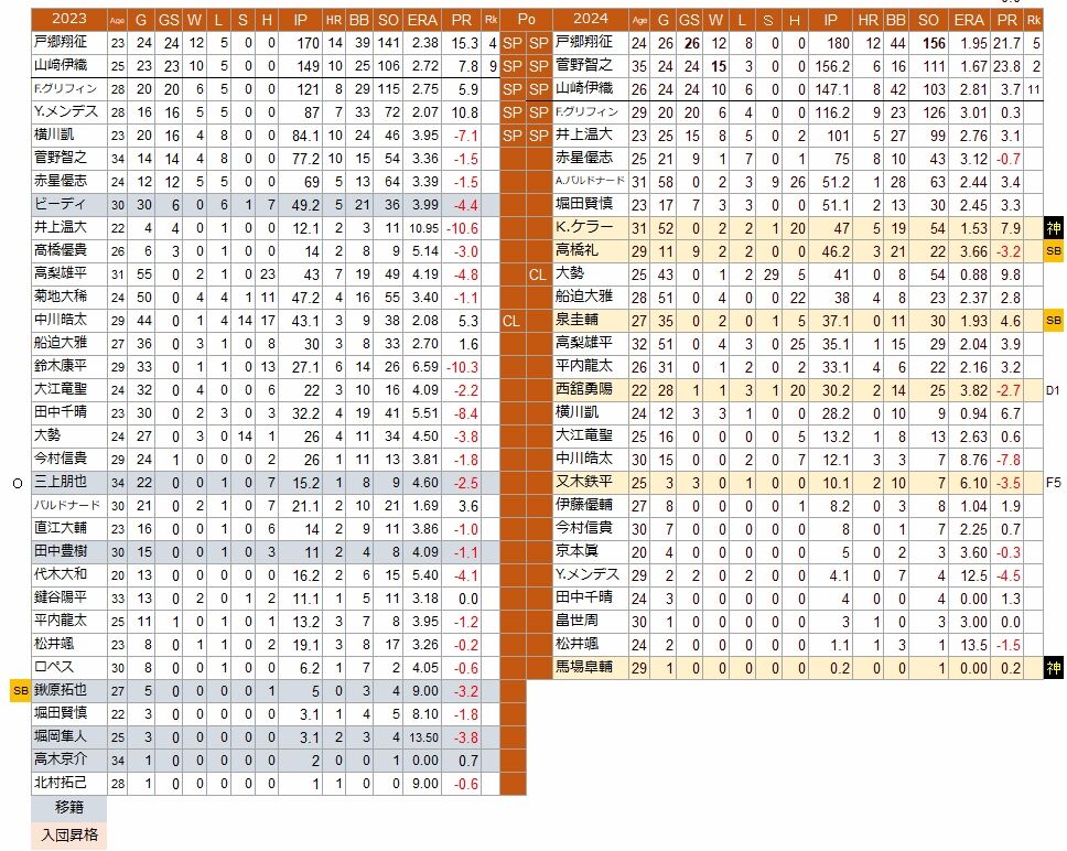 続くグリフィン、井上も100イニングを投げて先発陣は盤石ではあった。