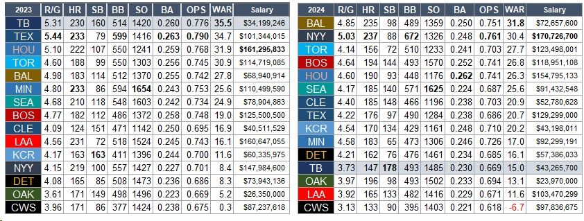 3400万ドルという低予算でWAR1位だった打線は、12位に転落した。900万ドル増の補強は無駄に終わった。盗塁数は1位になったが、本塁打数が激減した。