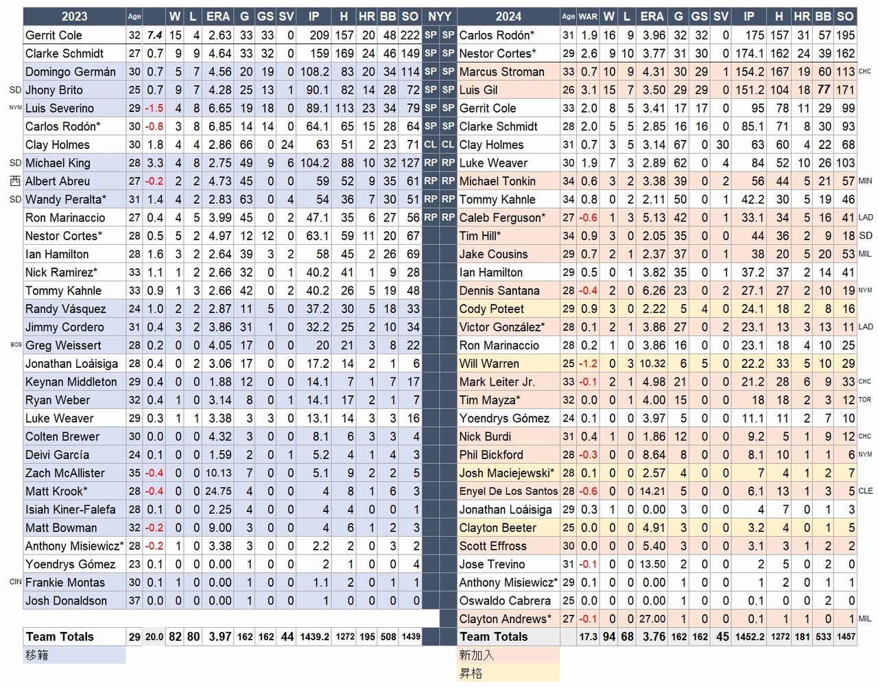 コールの前のエースだったセベリーノがメッツへ移籍。ヘルマン、ブリトーも移籍。