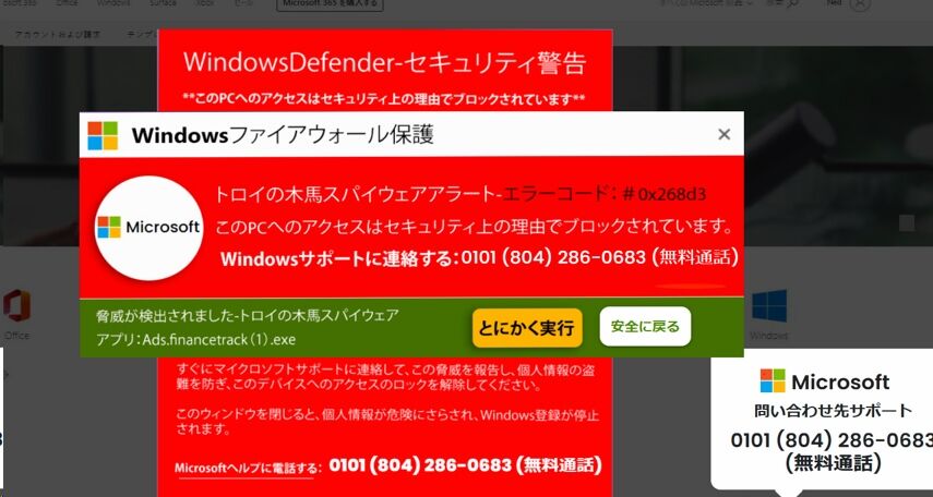 スパイウェアに引っかかったみたいだから、Microsoftに電話しなくちゃ、みたいに思ってしまうが、そういう時はそのページを閉じれば何にも起こらない。