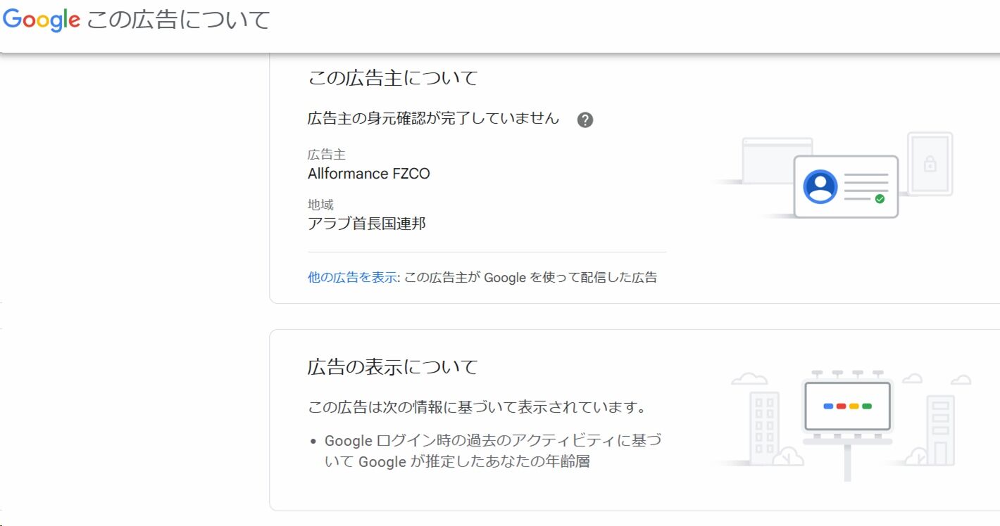 アラブ首長国連邦にある広告主が、あなたの年齢層に合った広告だと思って、これを出しましたって。