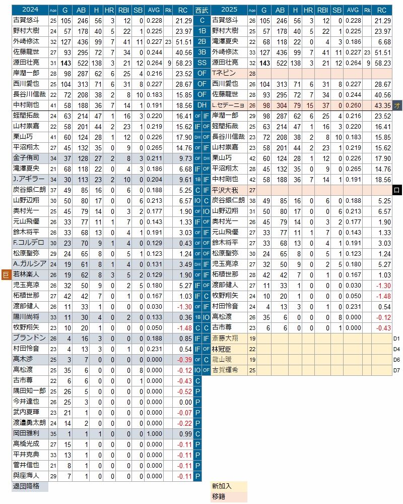 打たなかった外国人選手を自由契約にして、金子が引退した程度。そしてオリックスのセデーニョを獲得し、新外国人を得た。