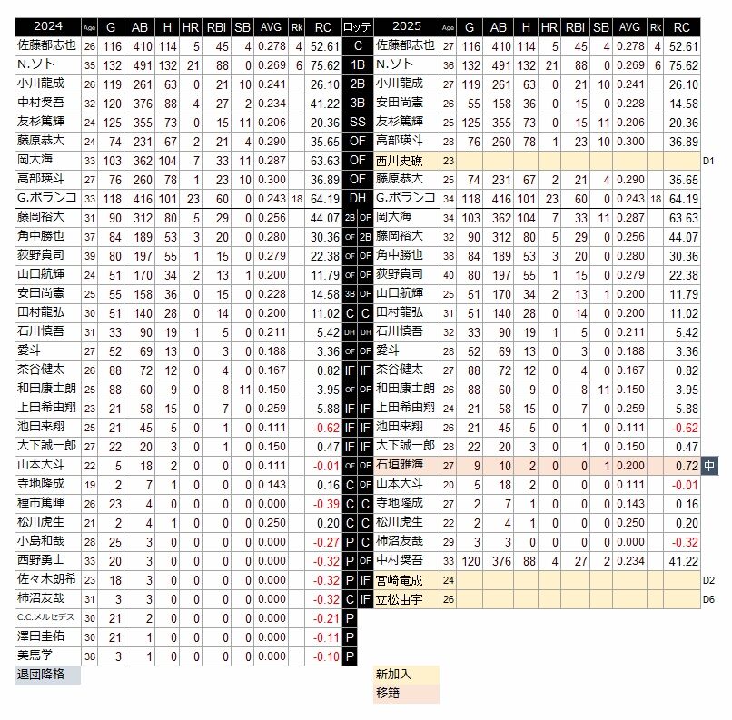 24年と25年の打線
