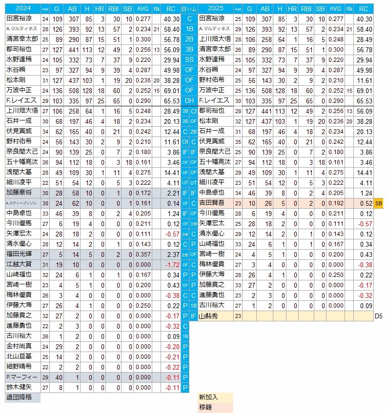 若手の伸びしろを考えると相当分厚い打線になったと思える。