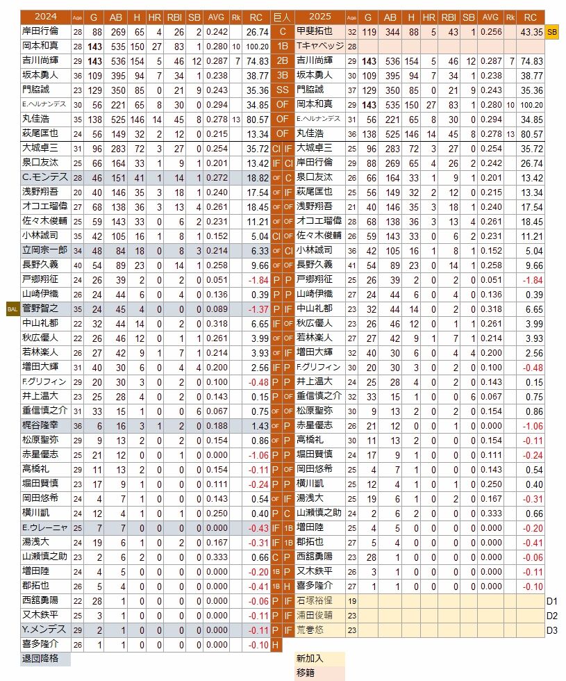 24年と25年の打線