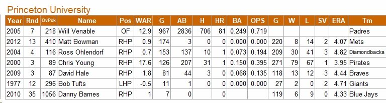 投手ではパドレス、ロイヤルズで活躍したクリス・ヤングがプリンストン大だ。
