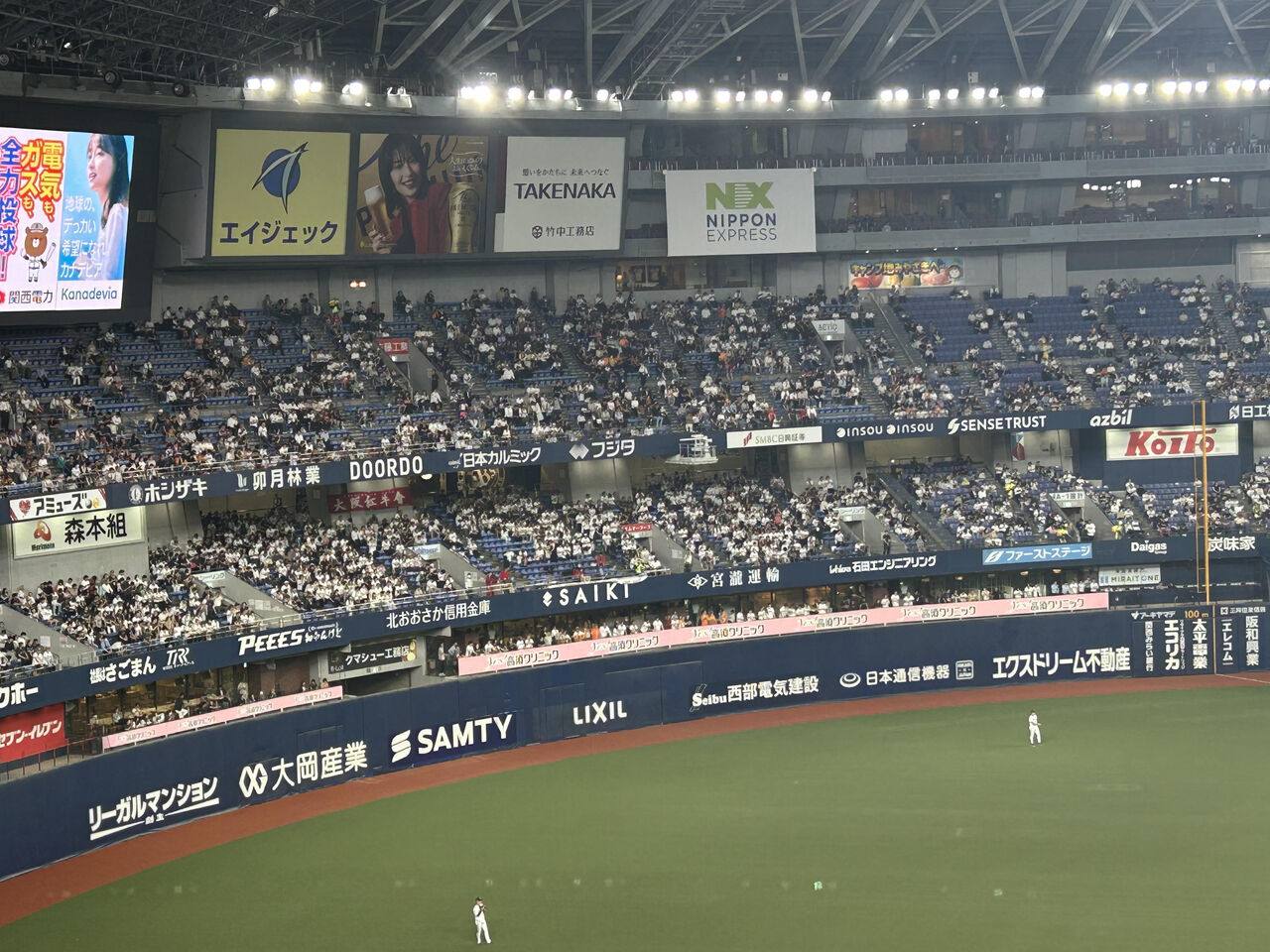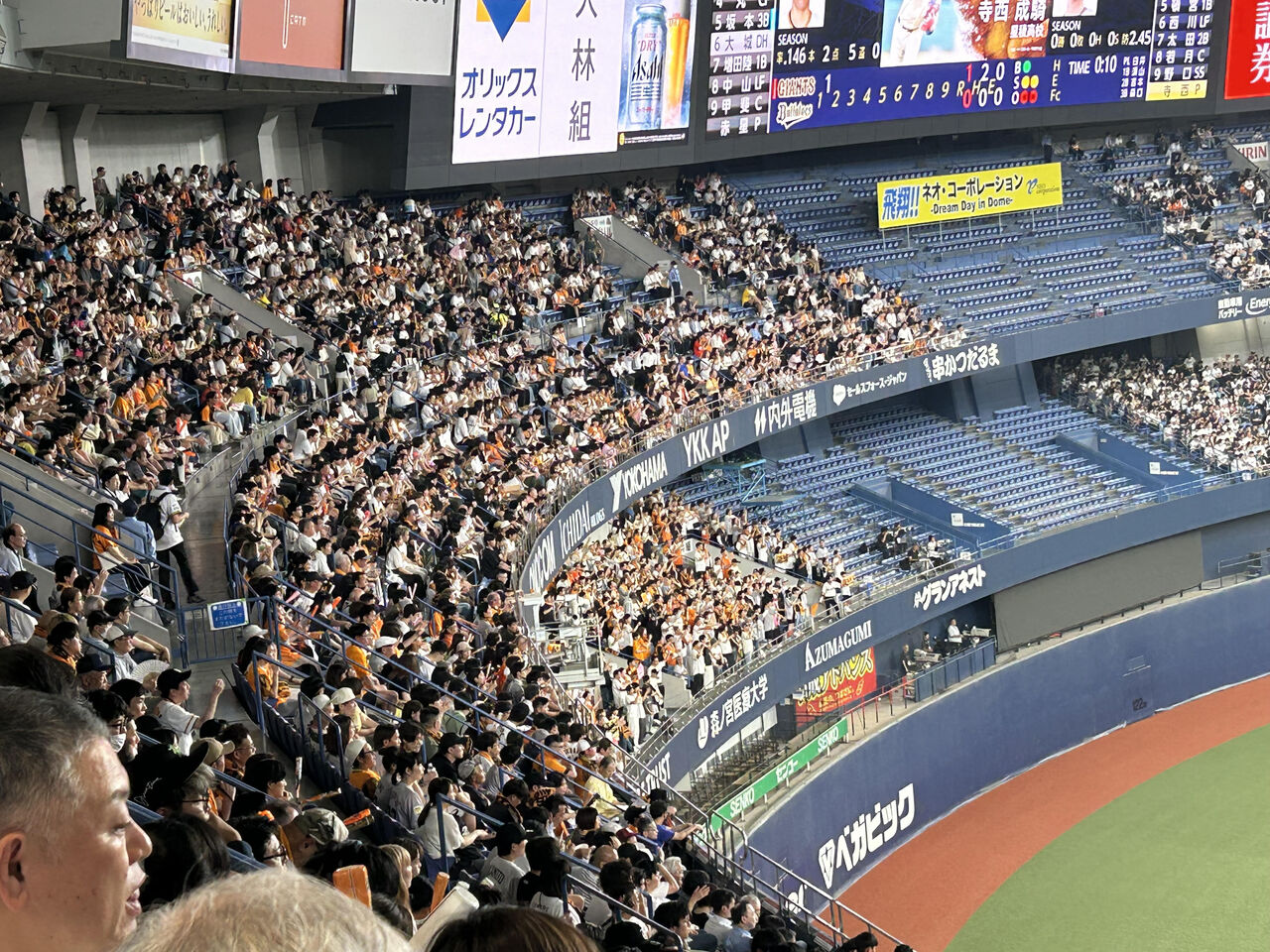 京セラドームの三塁側は「ロードチーム側」であり、普通であれば「ホーム」の一塁側よりすいているのだが、なんと、昨日は三塁側の方がはるかに多かった。