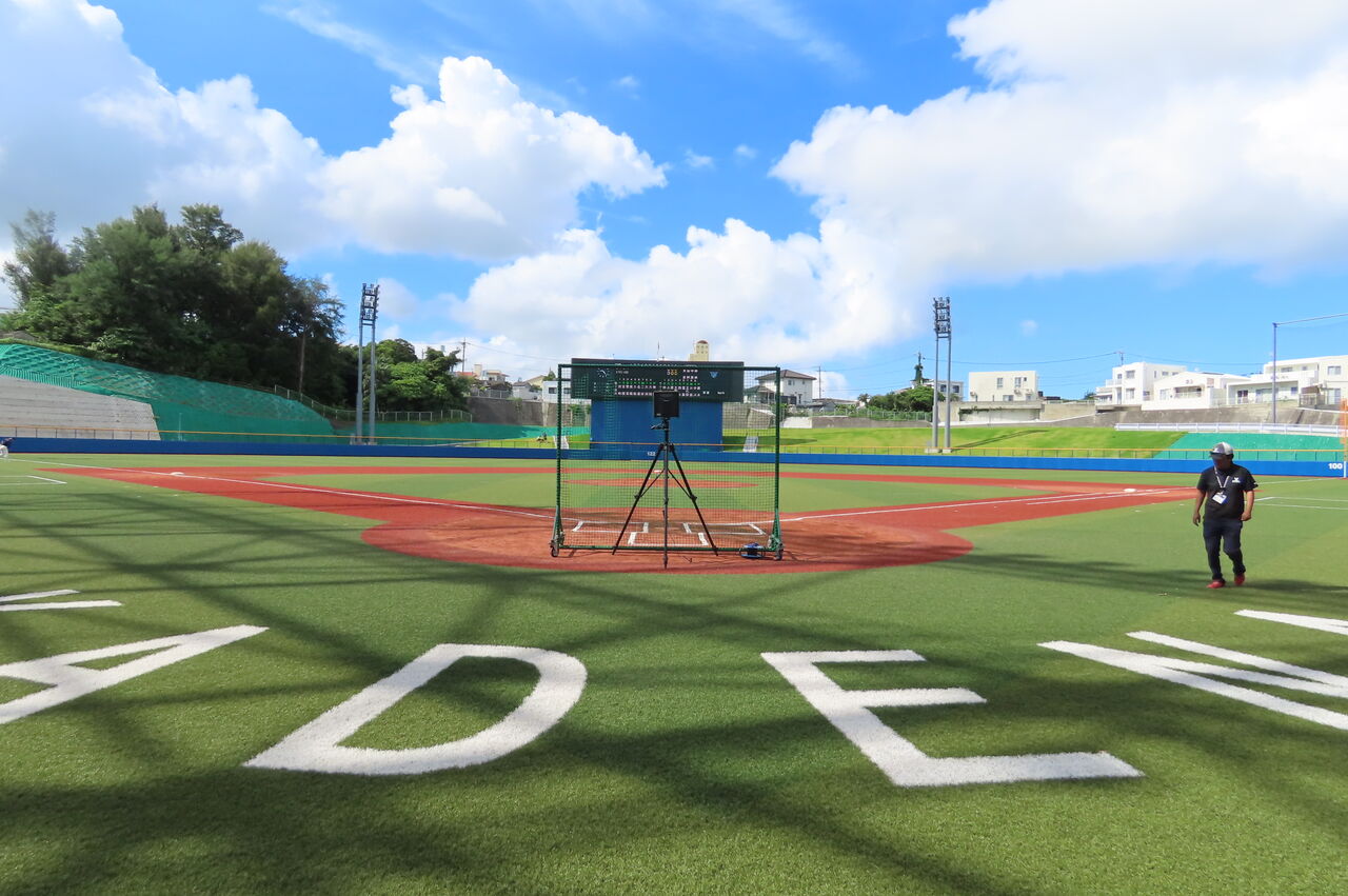 全面改修された嘉手納球場でやる。この球場はDeNAの二軍(B組)キャンプ地で10年前から来ている。
