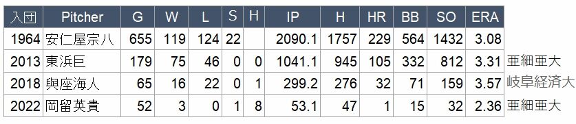 出身プロ野球選手を見ていこう。まずは投手