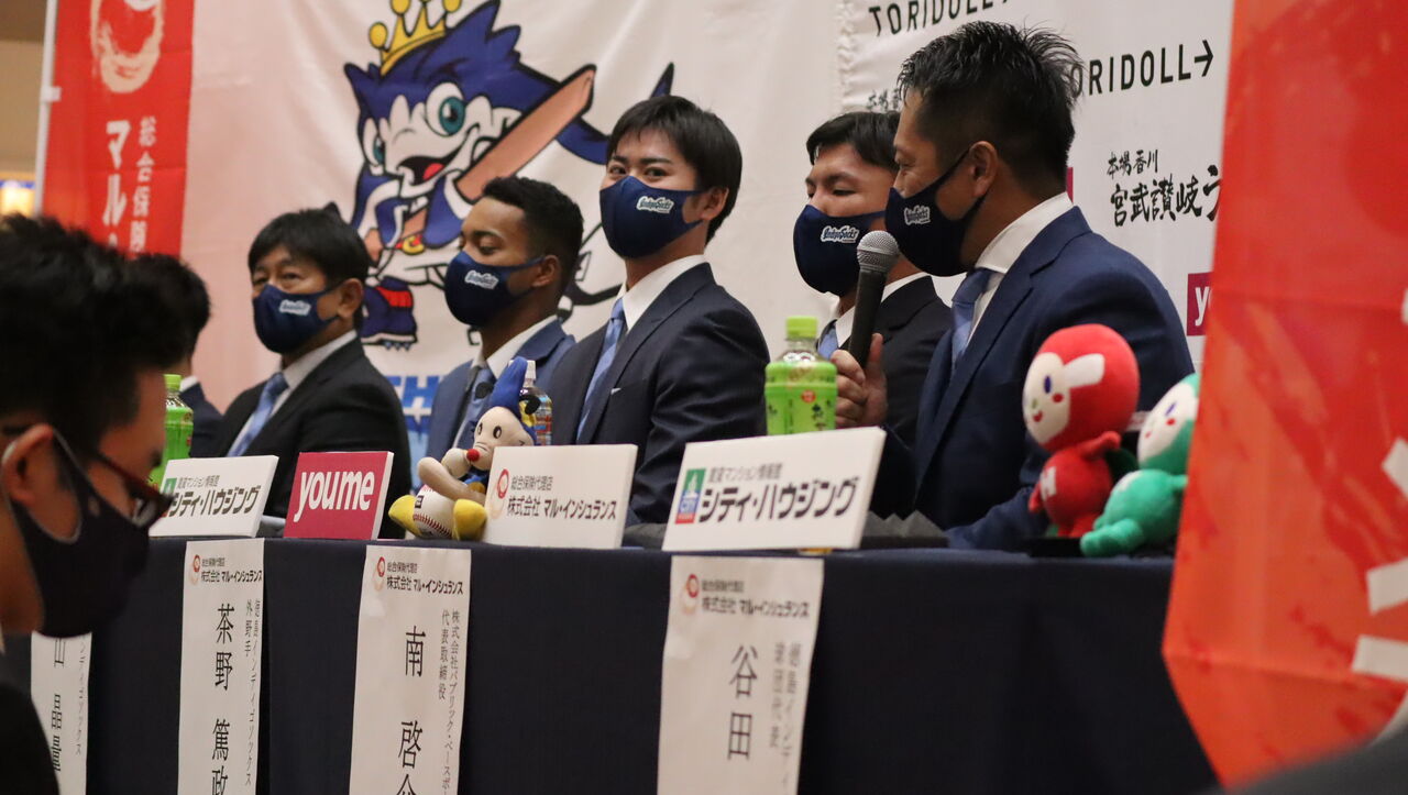 ドラフト発表時。西武のモンテル、オリックスの茶野と同時指名だった。
