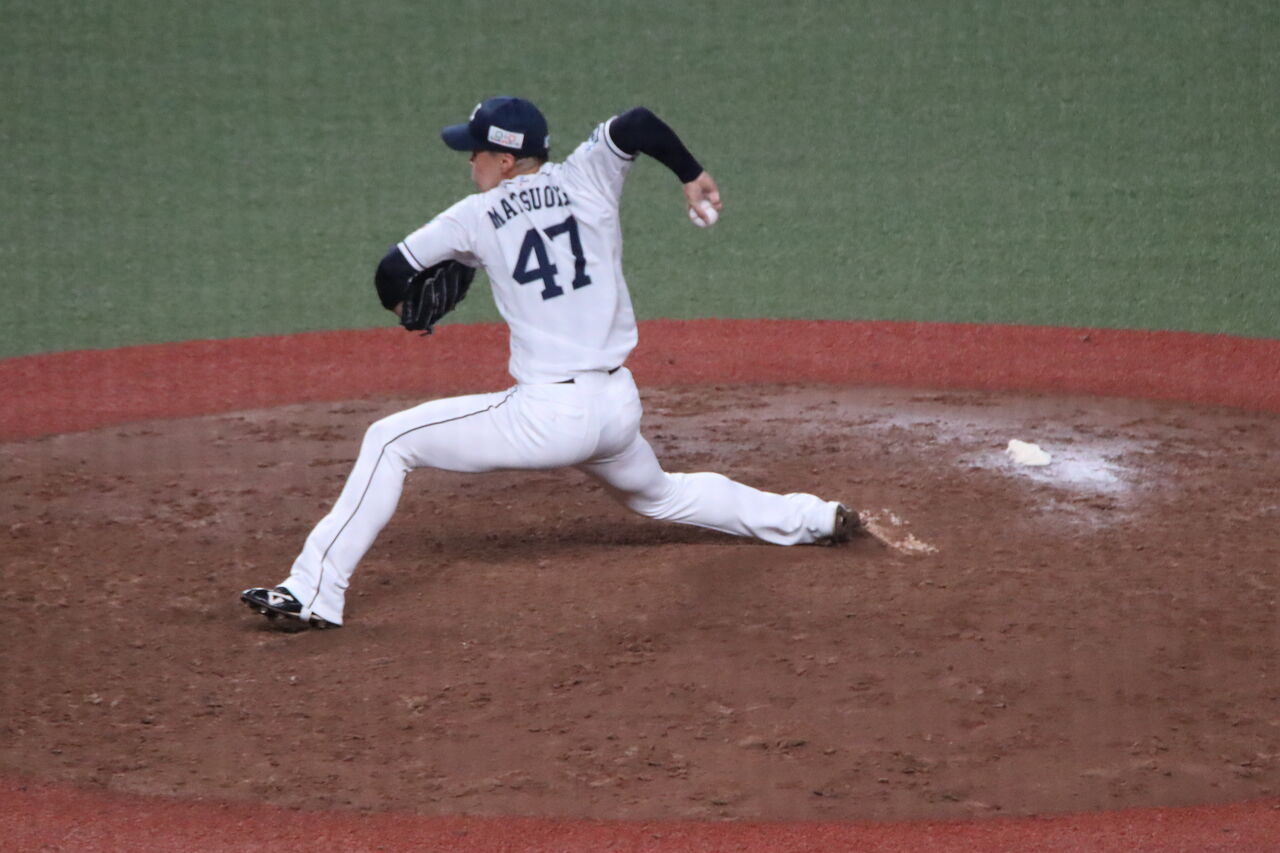 松岡は独立リーグ埼玉武蔵から西武へ、期待がかかったが結果が出せず22年現役ドラフトで日ハムへ。今季初めて1軍で投げたが戦力外に。これは21年。育成再契約をオファーされた。