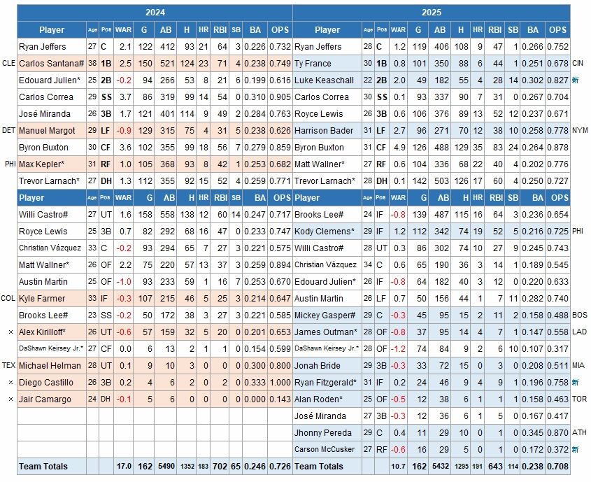 同じア・リーグ中地区4位だが、前年とは大きく状況が違ったツインズだ。