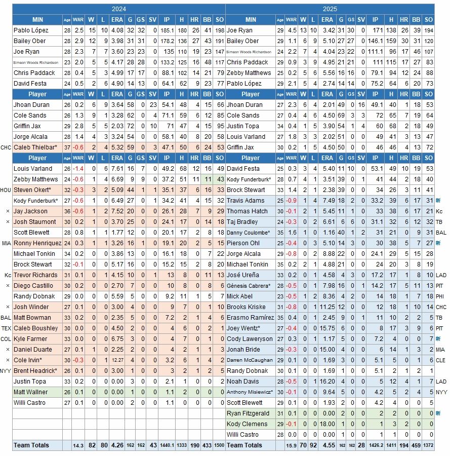 先発、救援の主だった顔ぶれは大きく変わらず。ただロペスは好投するも6月に戦線離脱、オバーは打ち込まれ、5年目ライアンがシーズン通して投げたが、全体としては先発陣は下落した。