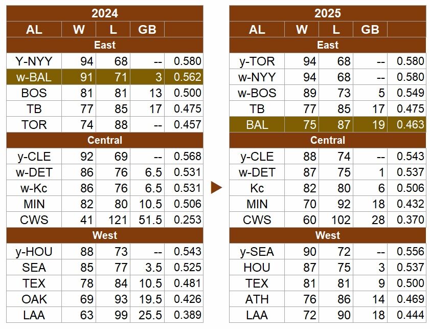 前年は91勝してポストシーズンに進出したが、今年は16勝星を減らした。箸にも棒にも掛からぬ成績とまではいわないが、最下位に沈んだ。