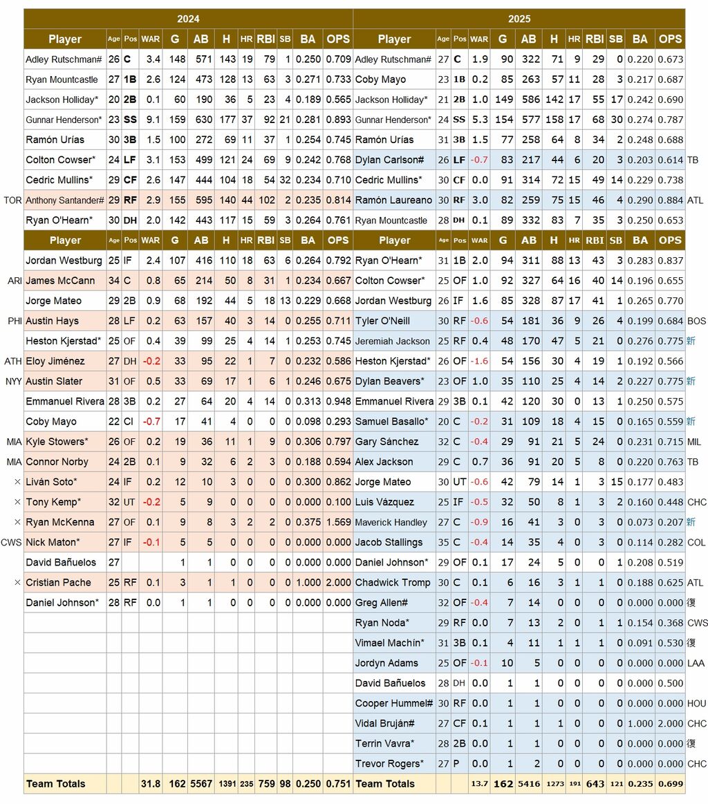 2022年の新人王である遊撃手、グンナー・ヘンダーソンが成績を大きく下落させた。