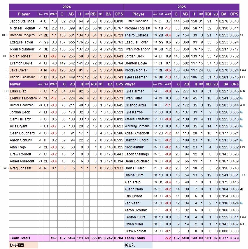 ホワイトソックスは再建モードになれば、十分に挽回が可能だと思うが、ロッキーズは「投手の墓場」クアーズフィールドと言う「環境要素」が大きいので、かなり厳しいのではないか。