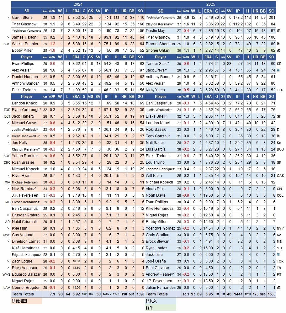 2年目の由伸がエースの働き。これに復活したカーショウが貢献したが、他に100イニングを投げた投手はおらず。