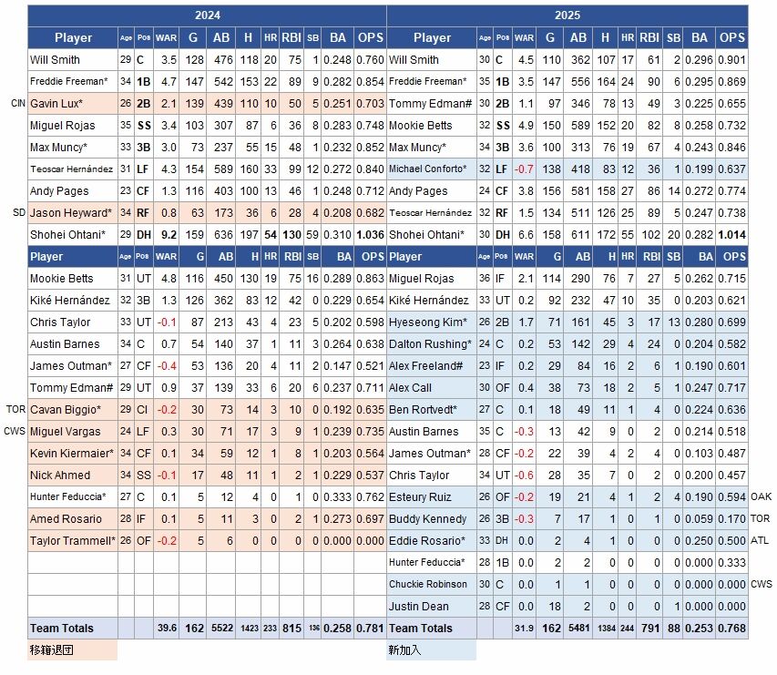 ベッツ、フリーマンはまずまず。大谷が圧倒的な成績を残したのは前年と変わらず。