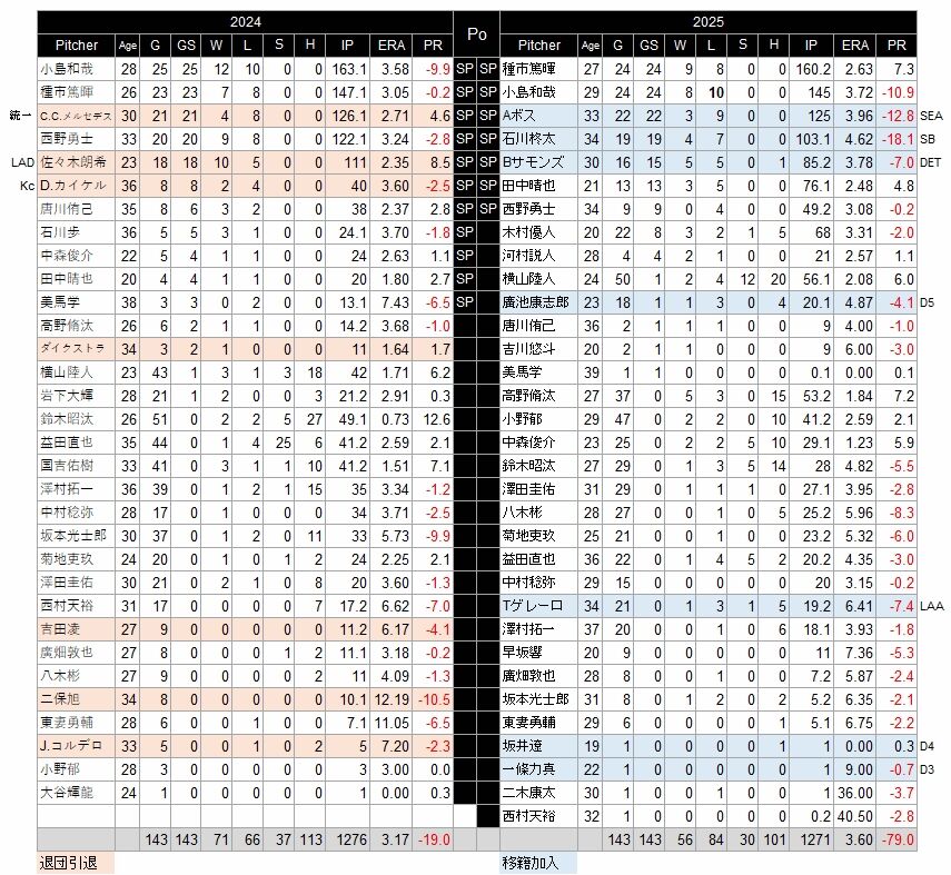 メルセデス、佐々木朗希と先発の2人が抜けたのが痛かった。ソフトバンクから石川を獲得。ボス、サモンズと外国人を獲得した。いずれもイニング数は稼いだがパッとせず。