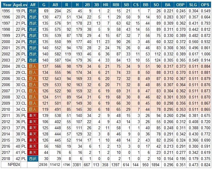 しかし日米通算では2705安打、これは張本勲3085安打、野村克也2901安打、王貞治2786安打に次いで4位、平成以降では最多になる。