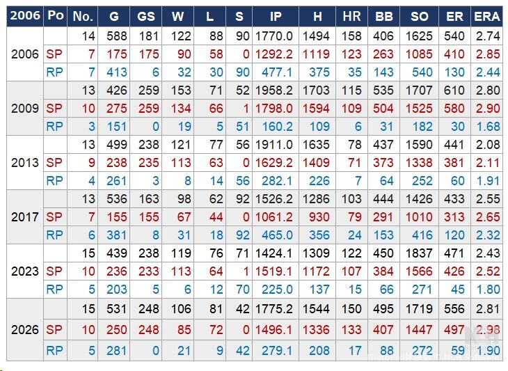 2026年、MLBから大谷含む5投手が参加。その分防御率は下がったが先発、救援は10人、5人と前回と同じであり、基本的によく似た陣容だといえよう。