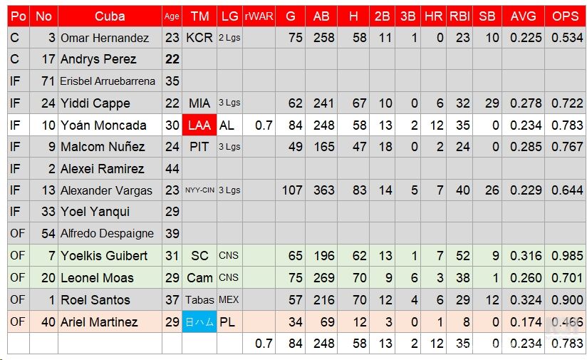 唯一のメジャーリーガーは元中日で、球団を抜け出してアメリカに渡ったヤリエル・マルティネス。彼も、キューバ後任の投手のようだ。