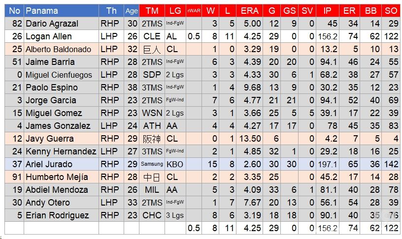 午前に紹介した、カナダ代表の左腕と同名のローガン・アレンが唯一のメジャーリーガー。先発で規定投球回をクリアしており、投手の柱だ。